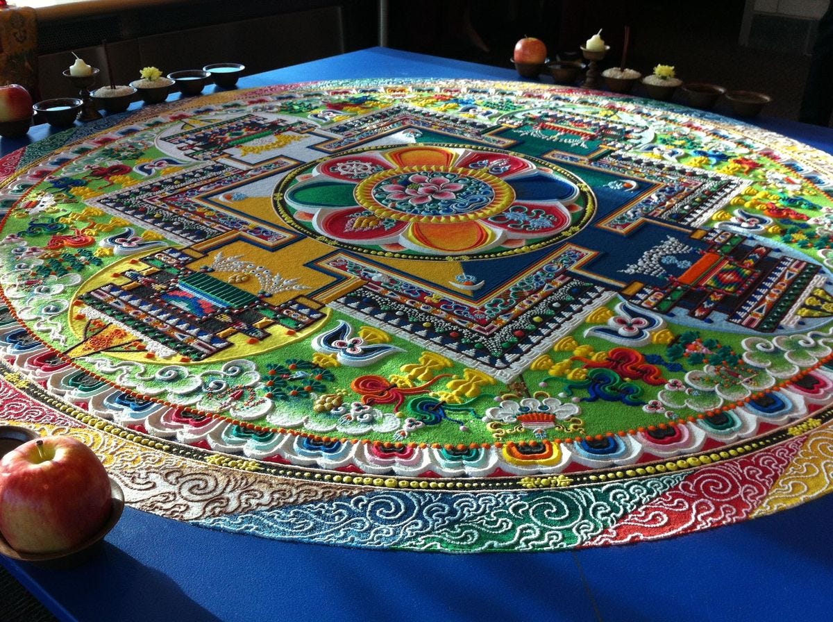 Yet there’s also always the dynamism at play, once we enter the realm of many, and we really don’t have a monopoly on it. Whale songs change dynamically from time to time, when one whale catches a whiff of a different melody and teaches the new hit single to the rest. There are patterns to this dance of connectivity that we can learn to observe better, so that we can sense the next direction for the mandala. Our highly individualist modern cultures have given rise to particular artistic forms that reflect our personal psychological battles, but now it’s surely time to remember that our navels are just the endpoints of invisible umbilical cords to the greater movement. Ironically the development of AI slop may force our hands with this. Slop is exactly what we don’t want. Slip slide slither sludge slowing... well maybe slowing down is what we want. How do we get creative when the machine wants to imitate it all? This will require us to slow down from the hundredth ‘creative’ post of the day. Obviously we slow down best by doing our creativity in person. Performance in the moment, after practise, tuning in, respecting the other beings we’re performing with, be it nylon string or magic wand or undefinable quality of the moment. Where the connection, the embodied connection can be felt, by the crowd of 150 or so if we’re lucky, and the fire can be stoked; the fire that also extinguishes our artistic egos each time we create something again.