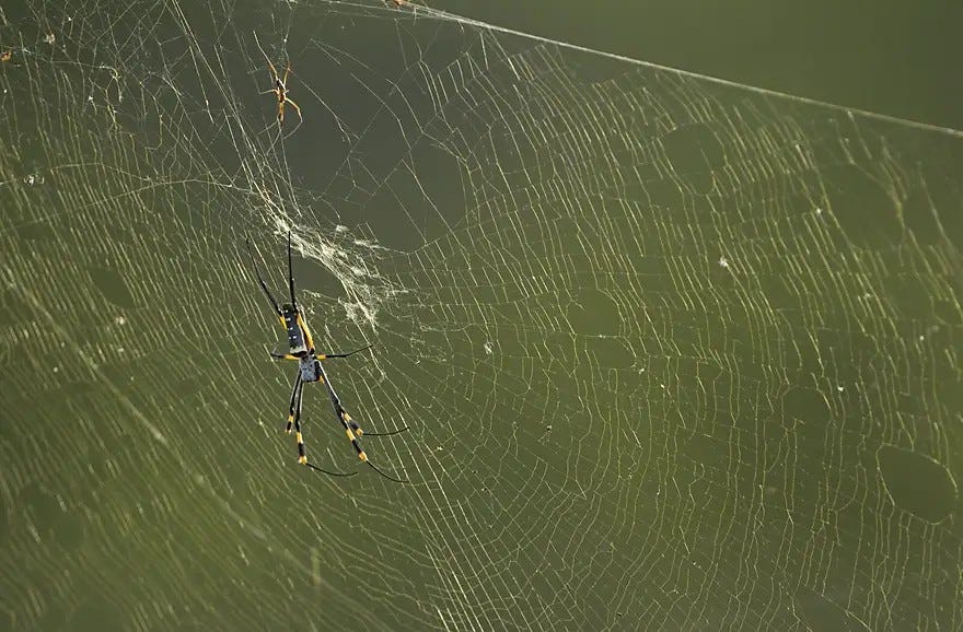 It’s co-creation in the end. I had a wild night once where I decided not to be in charge but to ask anyone I met what should happen next, and to go with it. The enormous relief of not having to bear all of this alone is quite essential in these times. Our tiny minds can’t figure it all out, even as we might be designed to try. And so where there may have been victory in our marking of our frontiers, here there is instead the joy of surrender. It’s not always comfortable. Sit still for too long in the forest and something will nibble you. Our ancestors co-created prayer for such times, which is another kind of chant. Our egos want us to get spiritual support for our personal success. Our wiser selves chant for the good of the universe because it’s something we’re designed to do. Somewhere between the two, the next chapter begins. To get there we have to open the door, take off the protective coat, make a suggestion or a response, and keep feeling where to put our feet next to remain untrapped on the tightrope-formed web. On which note, I’ve written enough for today. Time to head off and see which part of the play - the great lila of life as the ancients would have it - wants to be performed next.