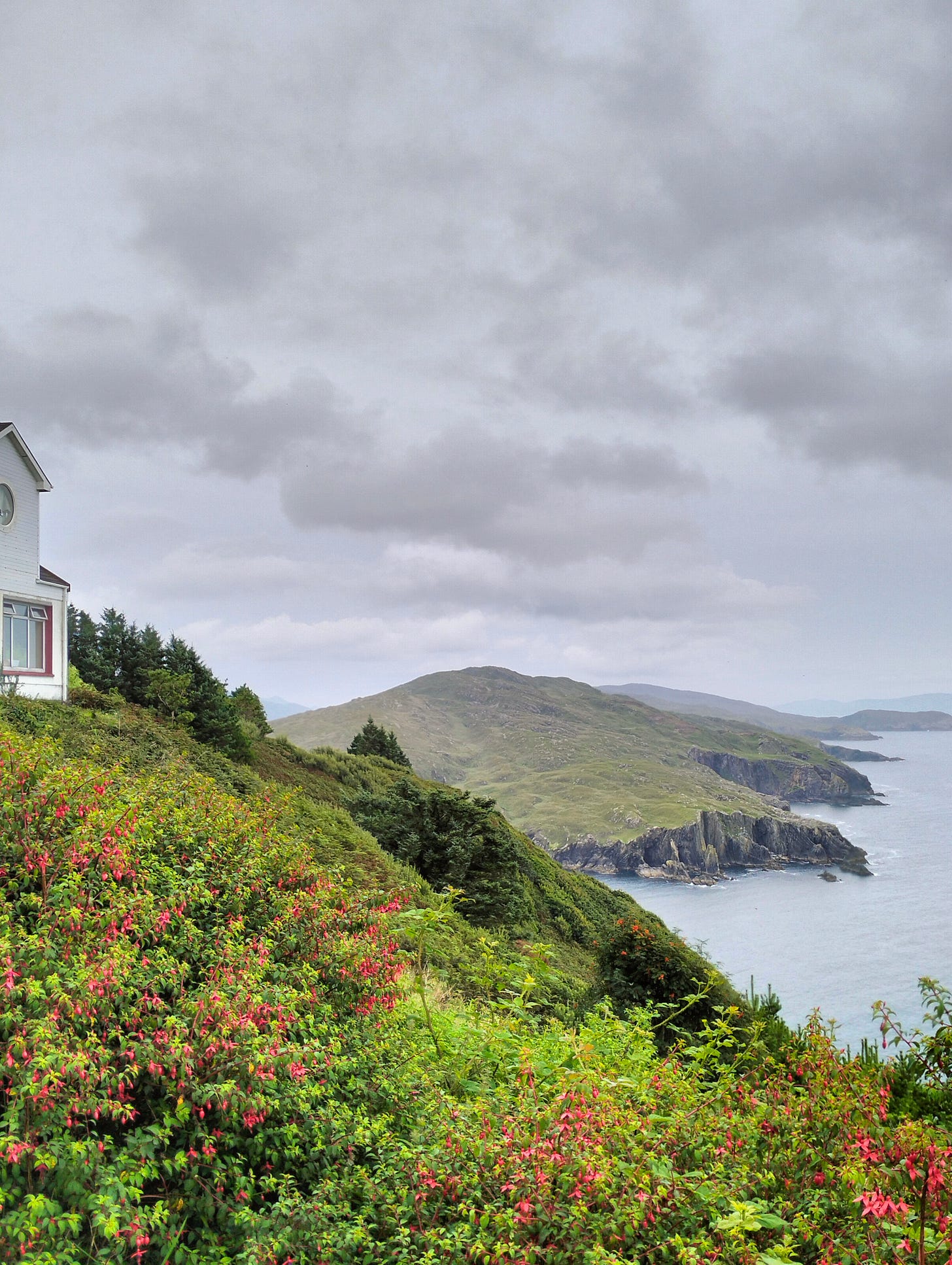 There are lovely flowers all over the west of Ireland this August. The roads are single lane for the most part, but we manage; we’re not in a hurry, thankfully, and it appears that neither is anybody else, certainly not the tractor drivers. Many tractors seem to be driven by boys of about ten – perhaps a little older(!), but clearly learning their family trade and getting their kicks in the same activity. Elsewhere I’m told there are definitely mag racers around à la Cape Flats (or Exmouth at night). Some of the land is parceled out illogically, following centuries of, let’s face it, a lot of rural tragedy, usually at the hands of the British and the proto-British before them. The flowers it turns out are often invaders too: red japonicas, orange African irises, and, though they’re not flowering at this time of year, rhododendrons, all of which thrive in this kind of moist climate. The flowers are on all the verges, and they’re occasionally whacked by overprotective landowners with weedkiller; not the best solution to something that dies back annually and is beautiful, even if it’s a little excessive at times. On the other hand I find it a little insane that there are places where the rhododendrons are actually protected, because it’s obvious to me as a South African that they are clogging up the natural flow of things, particularly in some of the water courses. They must be seriously pretty when in flower for the average bureaucrat to feel justified protecting them, though that’s not at this time of year. I guess Ireland has so much water that it hasn’t really considered the effect of so many plants from elsewhere, and they’re still generally proud of their pretty exotics. We don’t see too much actual boggy land this August, but I do hear of some, where a local drowned himself some years back. The hidden horrors; just one set of Irish stories, of which there are so many, it’s as if the land offers up story as the human version of flowering. On the west coast, it’s chilly, and Inch beach is not exactly a resort that makes me want to sunbathe. The average summer maximum temperature out here is a ‘pleasant’ 19 degrees. We are well into the 50s latitudes now, which down south would mean the middle of a cold ocean near Antarctica and not much more. Here, though, we’re close to the Gulf Stream that keeps Atlantica unusually warm: so there are some surprising microclimate places where there are tree ferns and palms and other weird tropical things happening.